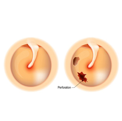 Rupture of the eardrum in severe cases